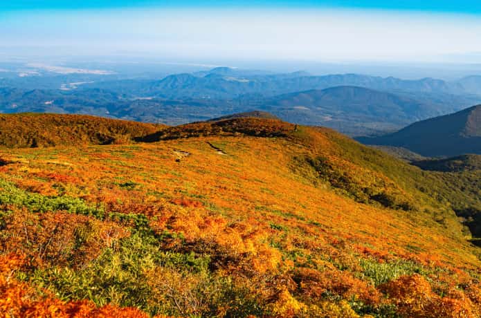 宮城、岩手、山形県の3県をまたぐ「栗駒山(くりこまやま)」。日本二百名山、東北百名山、※花の百名山の一座であり、東北屈指の紅葉名所で有名です。