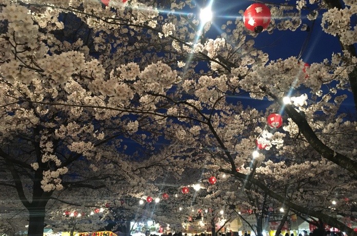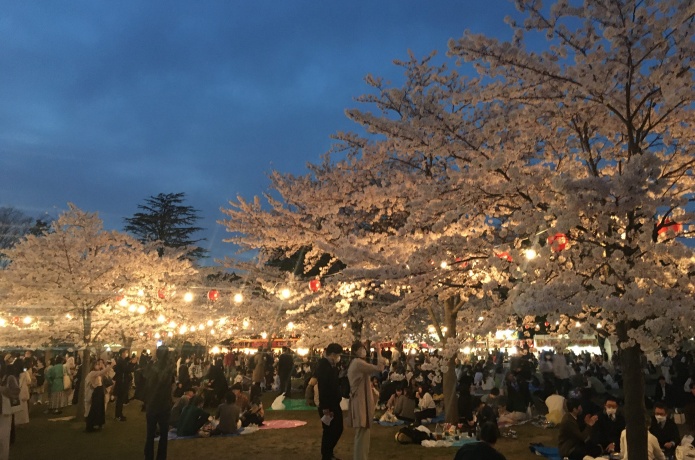 少し時間を置いてライトアップされた夜桜の様子を見てみましょう。