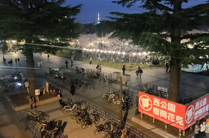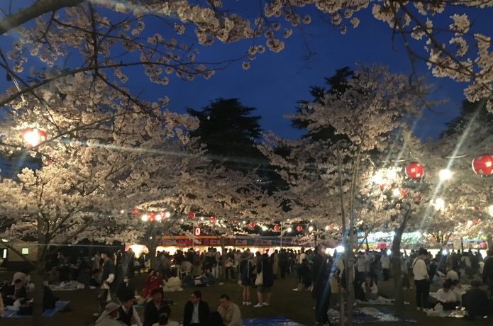 日中よりも花見客が増えていました。さらに次々と花見客が会場に入ってきます。