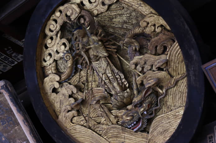 御祭神の第一主神は羽黒飛龍大神(ハグロヒリュウノオオカミ)で「海上安全」「大漁満足」「身体健全」「病気平癒」などの御神徳があるそうです。また、日本サッカー協会のシンボルマークにも採用されている八咫烏「やたがらす」が御神使になっています。