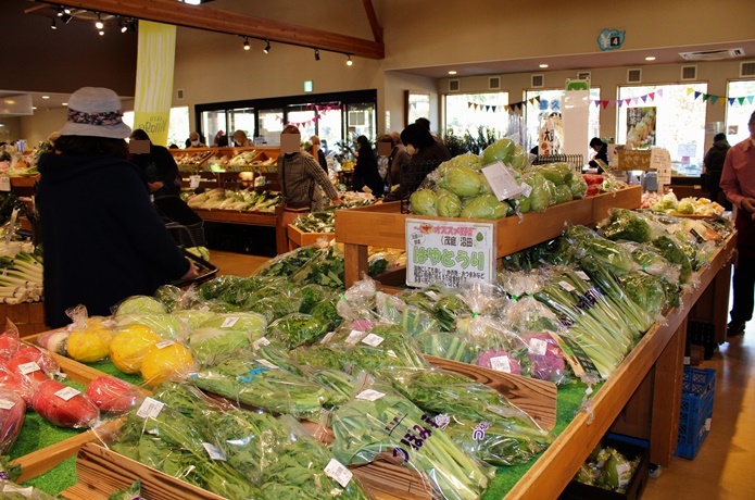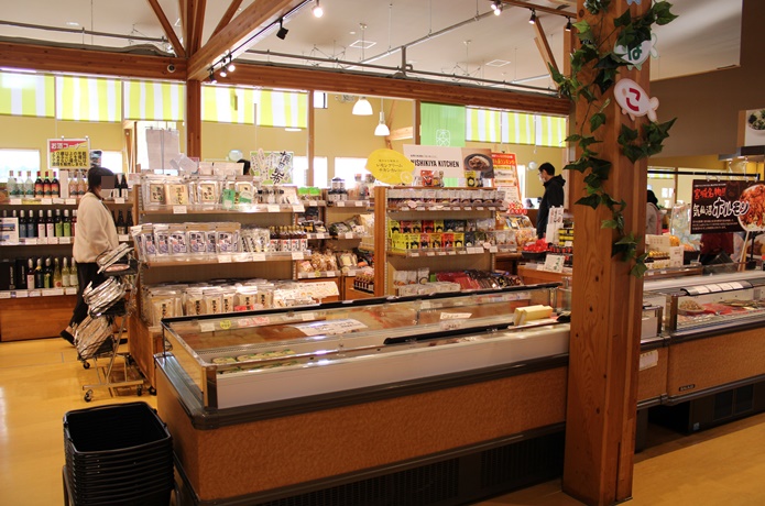 直売所には新鮮な野菜が並び、地元の特産品や仙台土産で人気の「喜久水庵」の喜久福をはじめ、土産物の品数や種類も充実しています。