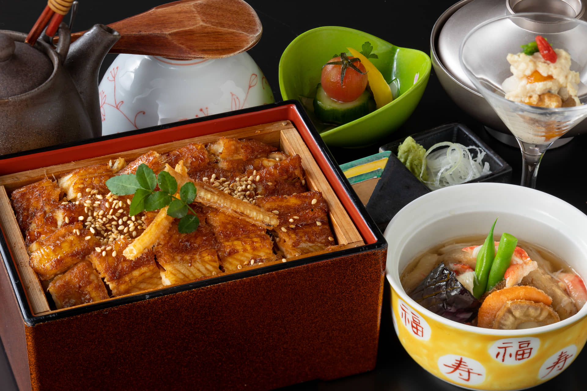 カキとアナゴを主軸とするメニューで、名物として愛され続けているのが「あなごひつまぶし」。三陸天然穴子の肉厚な部位のみを使い、酒蒸しにしてじっくり焼き上げた逸品です。まずはそのまま、次に昆布と鰹節をつかった一番出汁をかけていただきます。
