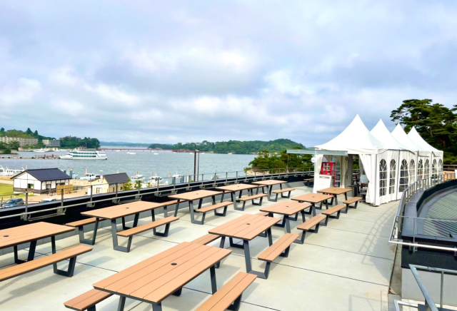 店内のほかに、松島離宮 屋上席3階、松島離宮 庭園の3ヵ所で食事を楽しめるため、屋外でバーベキュー気分を味わえます。