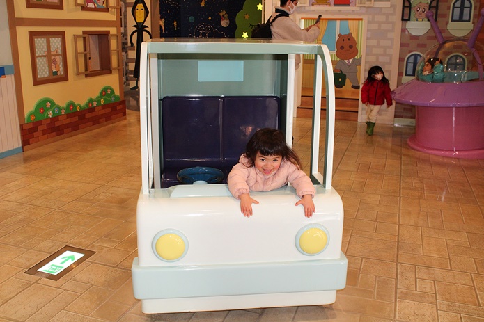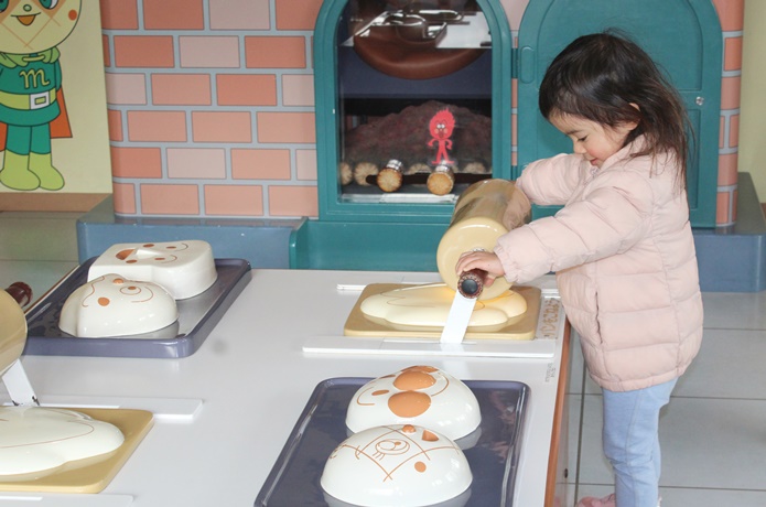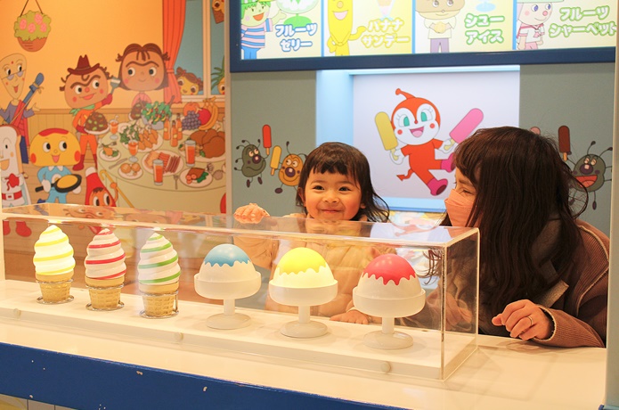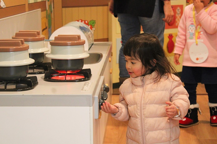 コンロに火をつけてみたり、アイスクリームやさんの店員さんになったり、しょくぱんまん号やバイキンUFOに乗ったり、楽しみ方は子どもにお任せ。