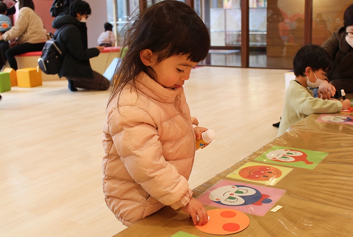 「あかちゃんまんテラス」では工作体験もできます。今回はアンパンマン、ドキンちゃん、コキンちゃんから選べました。