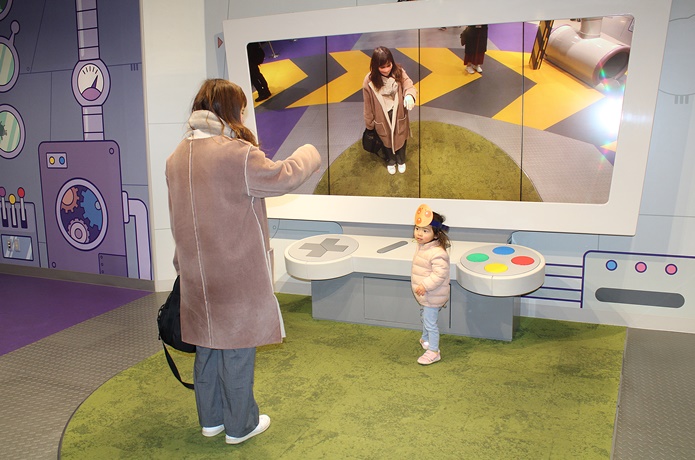 さっそくコントロールパネルをのぞいてみます。するとパネルに映った自分たちが、ばいきんまんのなかまに大変身!? 実際どうなるのかは行ってみてからのお楽しみ。