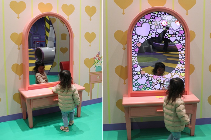 ふしぎなドレッサー。ボタンを押すと、鏡にかわいいドキンちゃんが登場! 鏡に映る自分の姿も気になり、何度も押して遊んでいました。