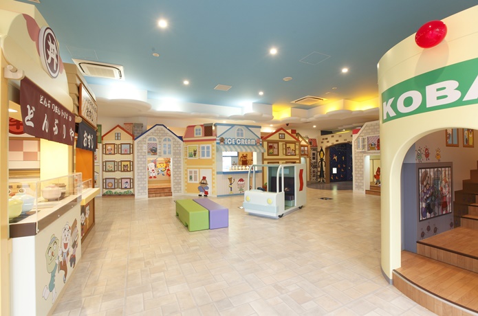 「わんぱくランド」の先には、アンパンマンのなかまたちが暮らす「みんなのまち」。アイスクリームやさんやおすしやさんがあり、お店の人になりきってごっこ遊びが楽しめます。