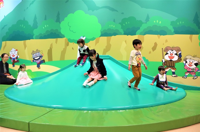 みんなの憧れアンパンマンごうや、キラキラと音が鳴るふしぎな飛び石、ドキドキの吊り橋など、体を動かして遊べる仕掛けがたくさん!