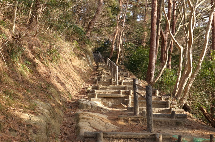 登山口から頂上を目指し階段を上ると、階段、また階段……!