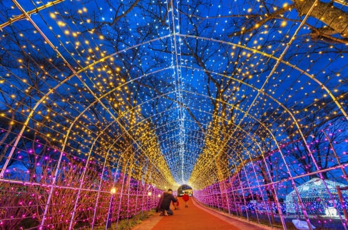 イルミネーションは地域の人々の手作りで、およそ25万球の光が公園一面を彩ります。