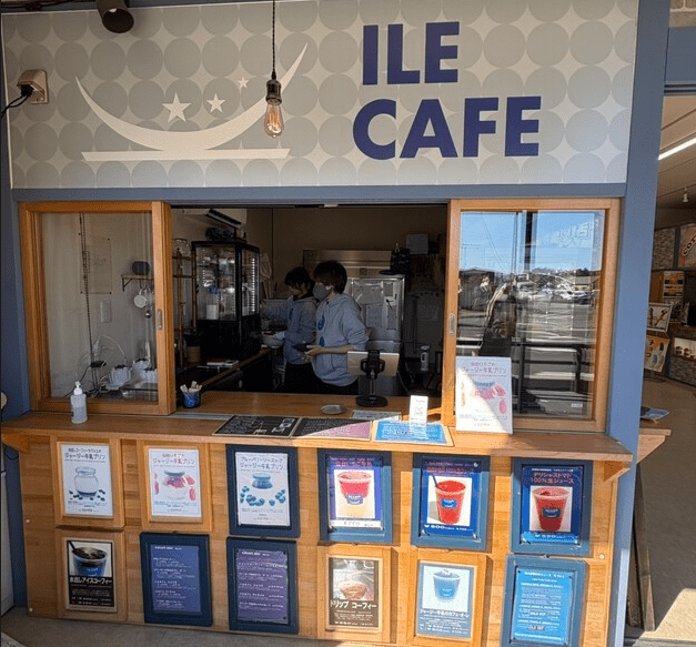 ILE CAFEは五大堂の向かいにあるカフェで、ハンドドリップコーヒーや東北各地の生産農家から仕入れたフルーツ・野菜を使った100%ジュースなどを販売しています。