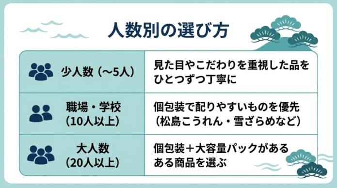 お土産選びで一番大切なのは、「誰に・何個渡すか」を先に決めることです。