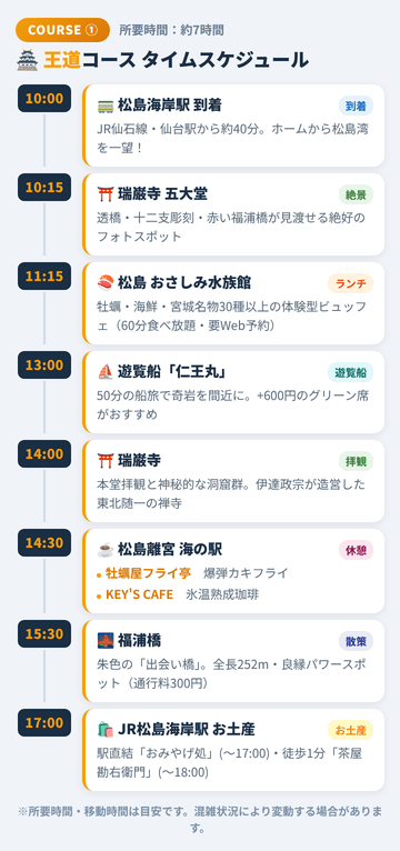 松島観光モデルコース②【最短】|滞在3時間!主要スポットを凝縮したタイパ重視ルート