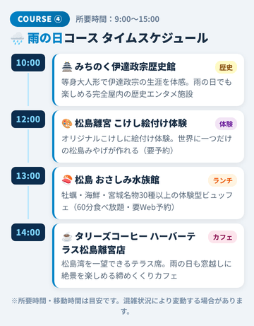 ↓松島観光【雨の日】コースタイムスケジュールはこちら※クリックして拡大↓